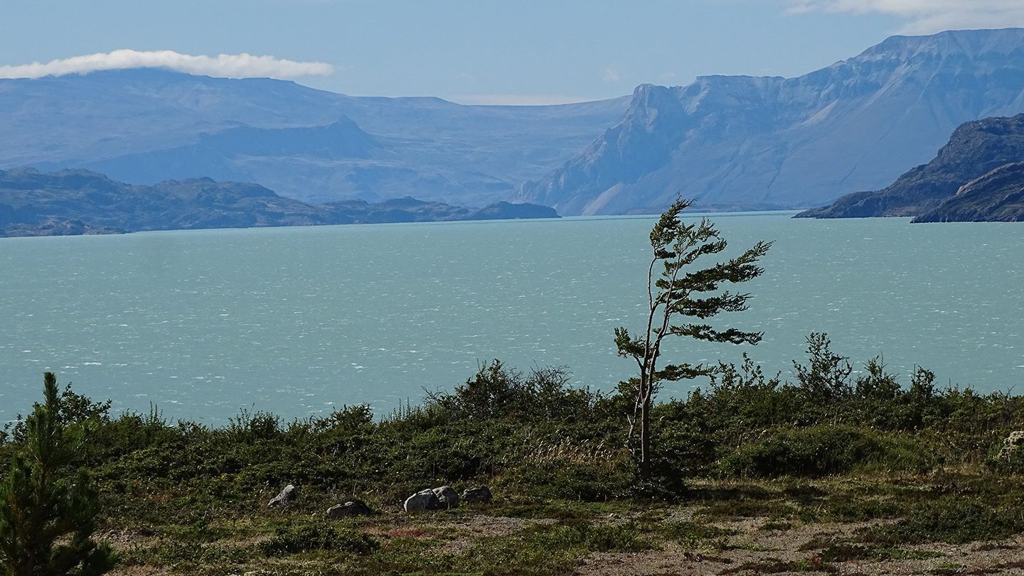 Lago O’Higgins. En días despejados se pueden ver témpanos flotando.